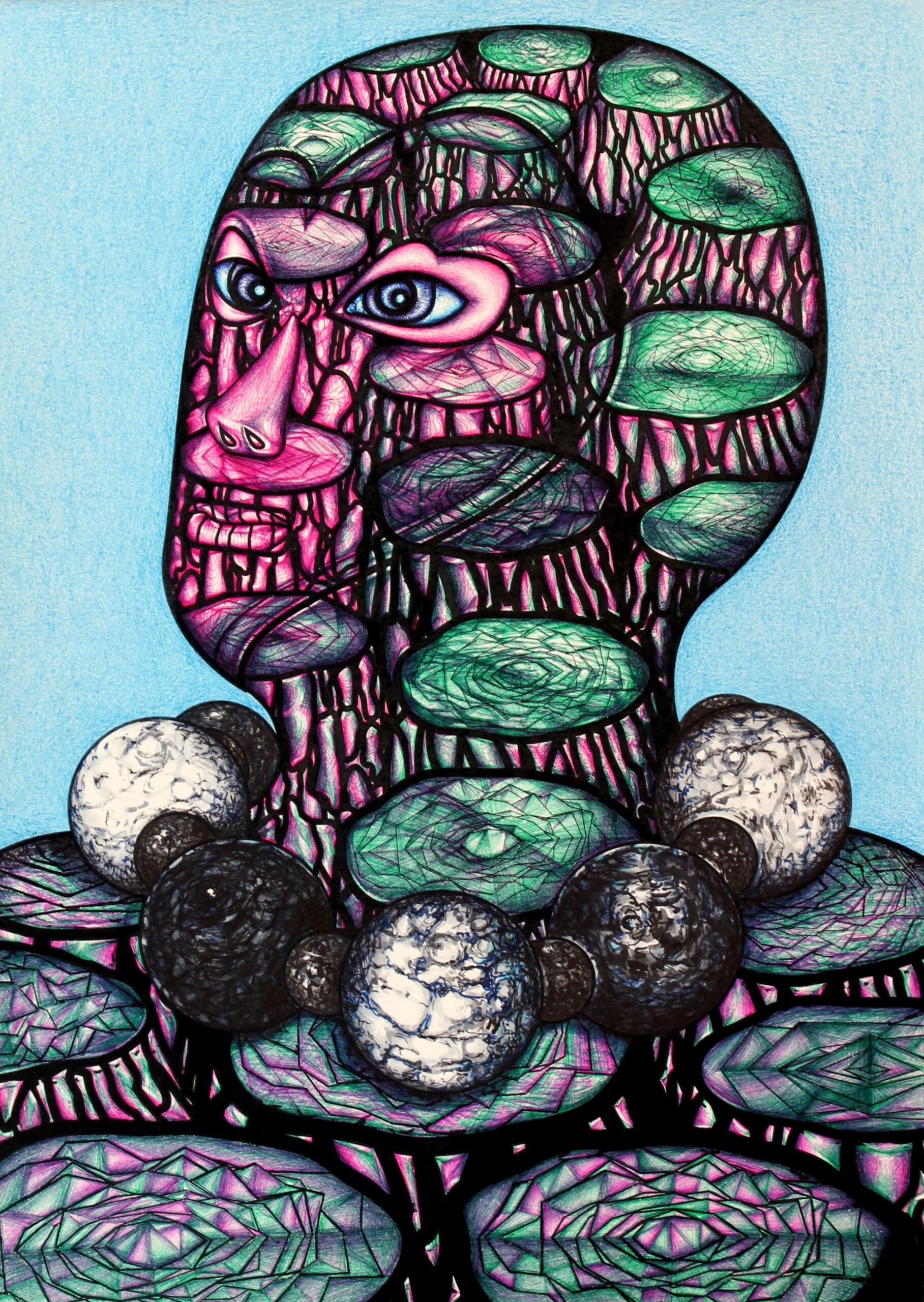 De portrettekeningen zijn uitgevoerd met balpen, viltstift en kleurpotlood, op 200 grams tekenpapier. Formaat: 29,7x 42 cm. UNICA