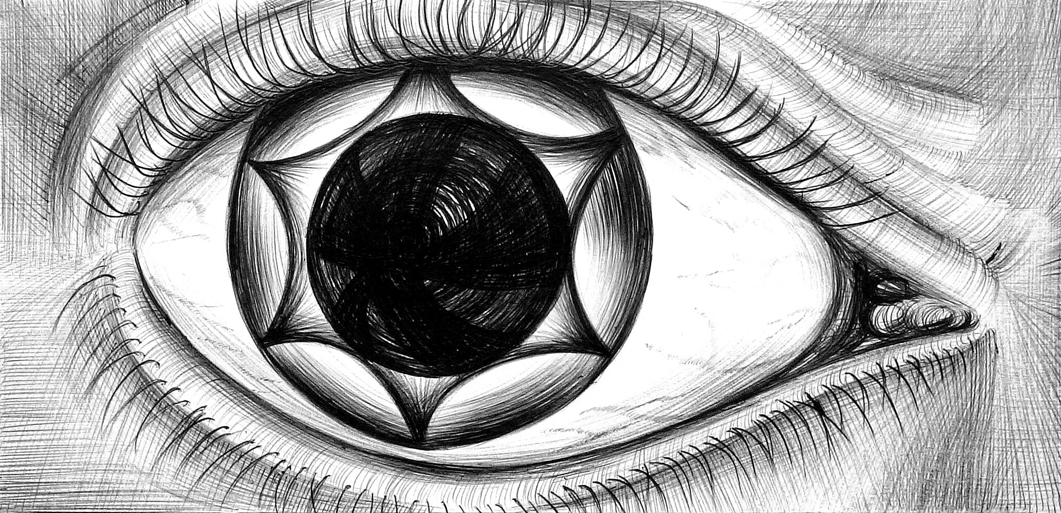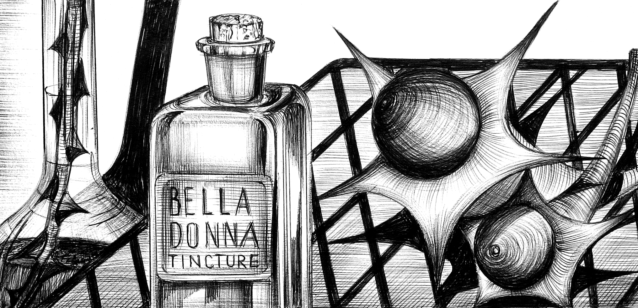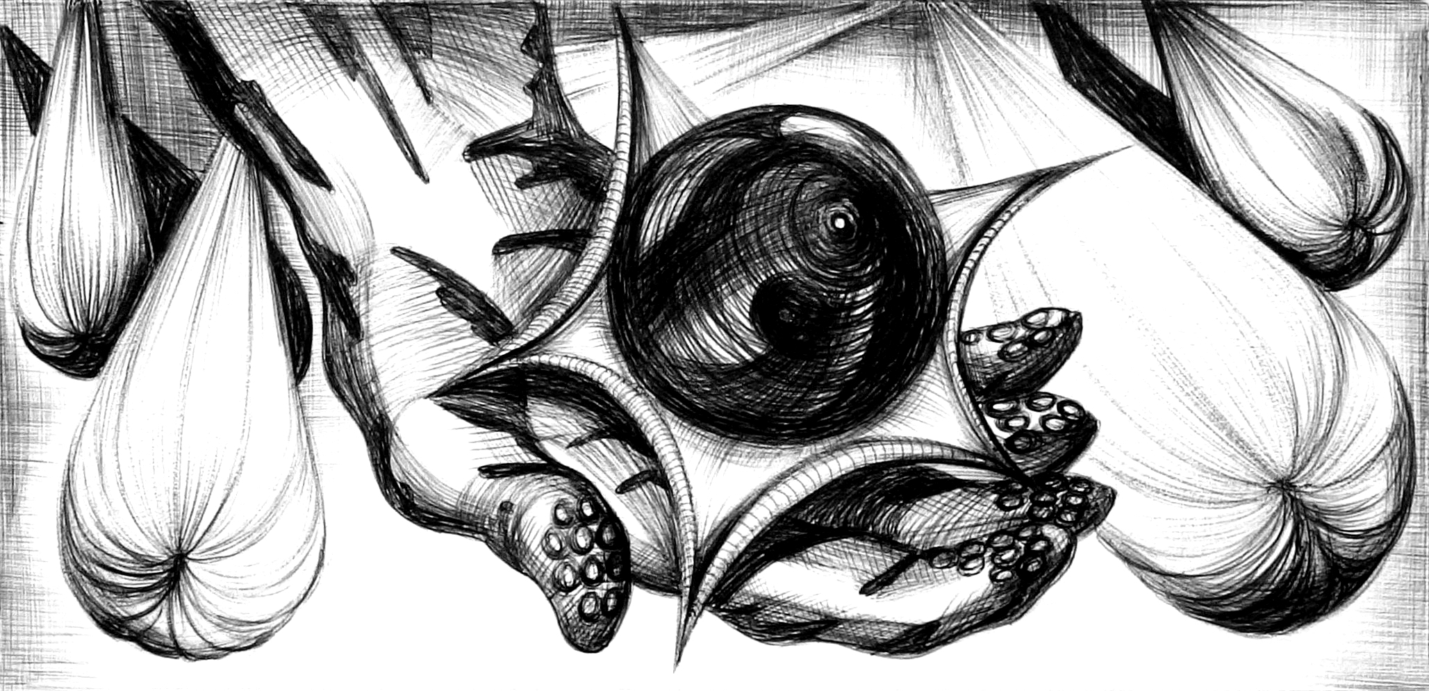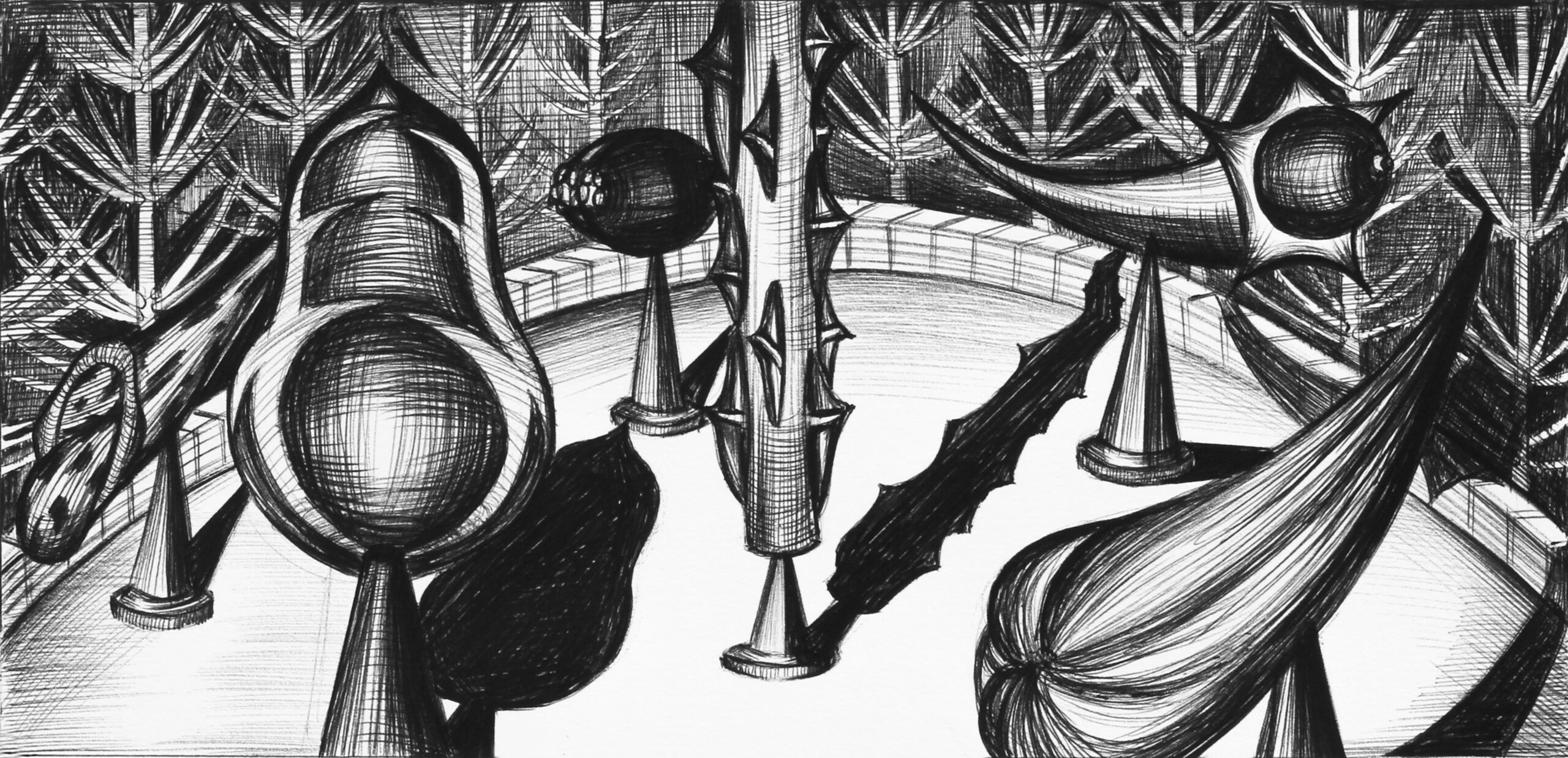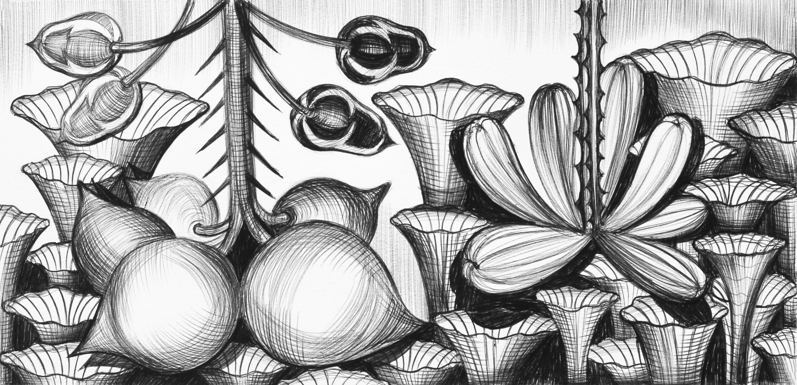 Serie handmatige tekeningen in balpen zwart op tekenpapier.