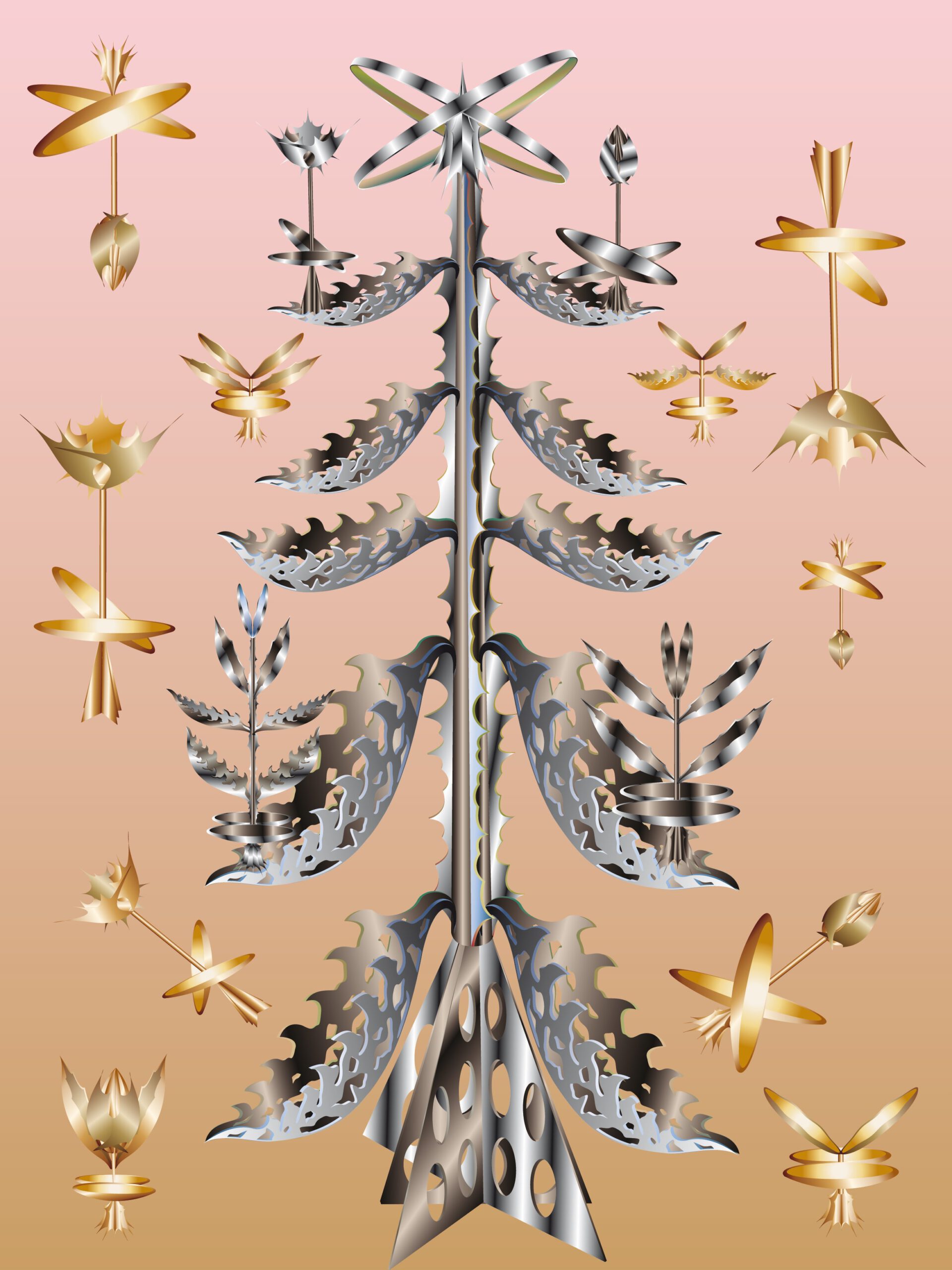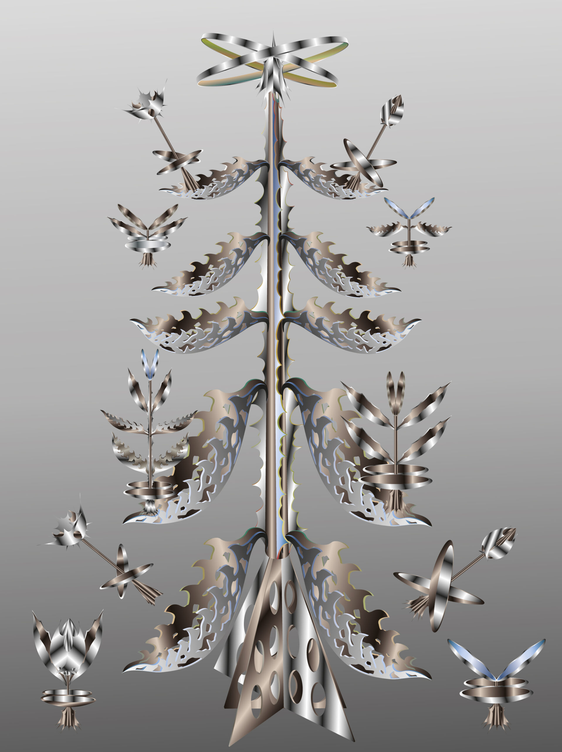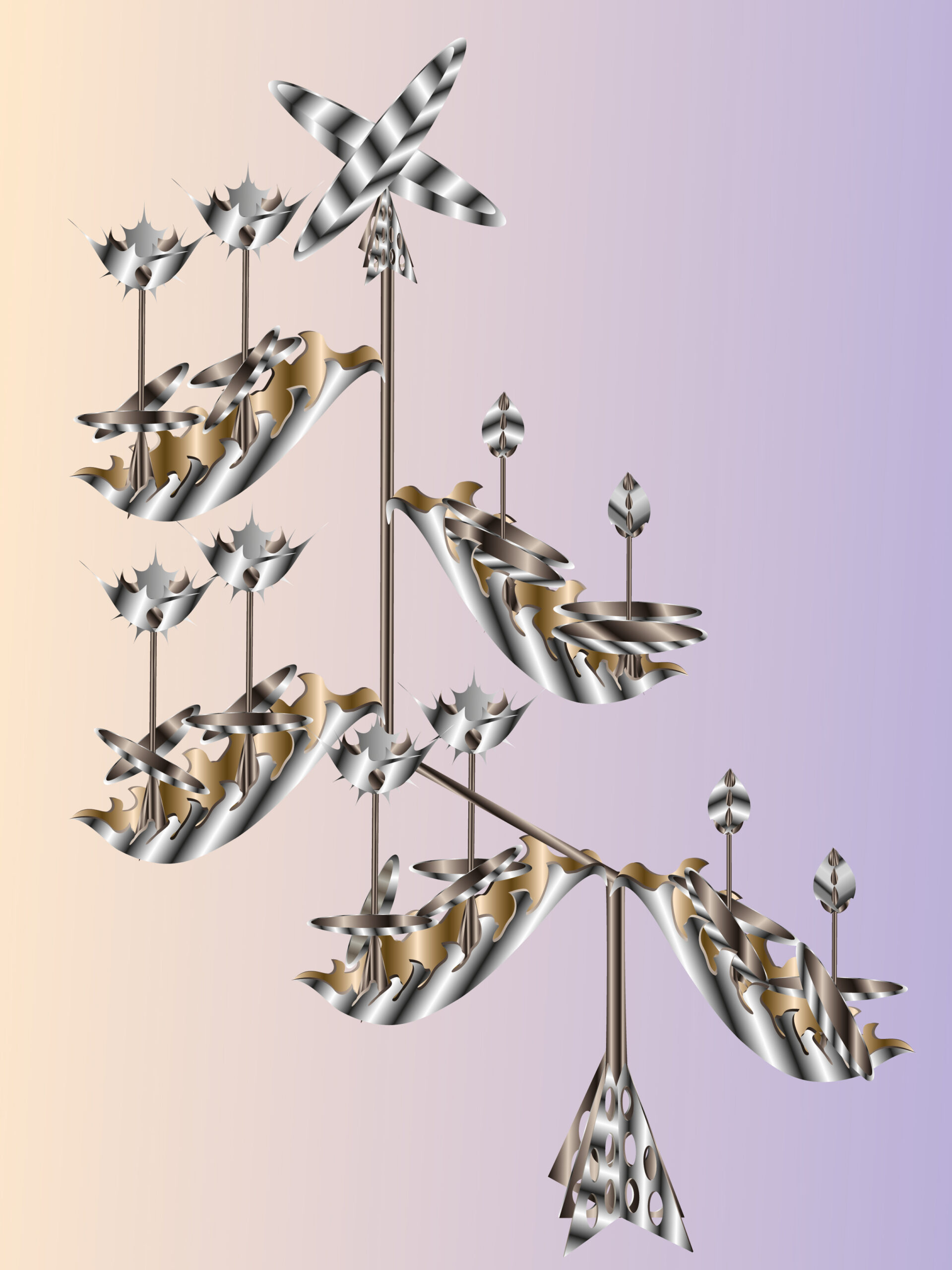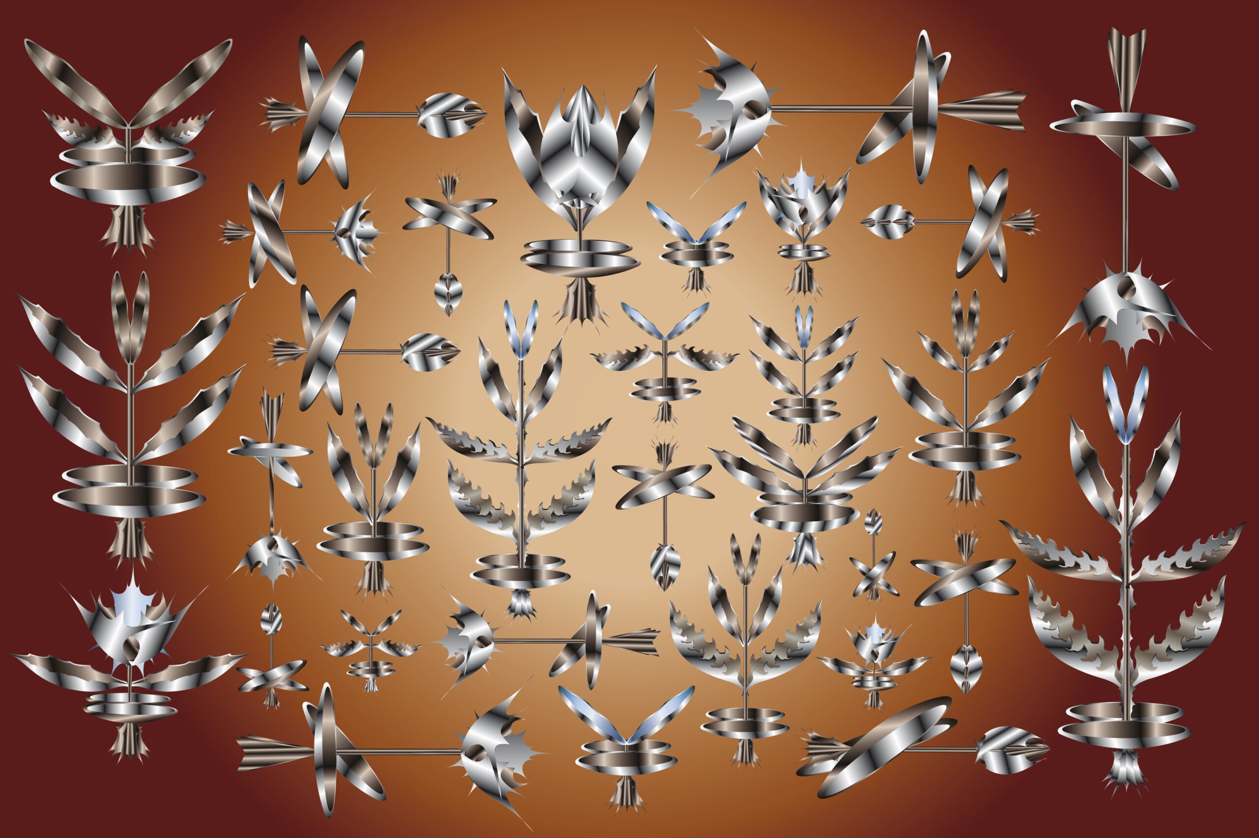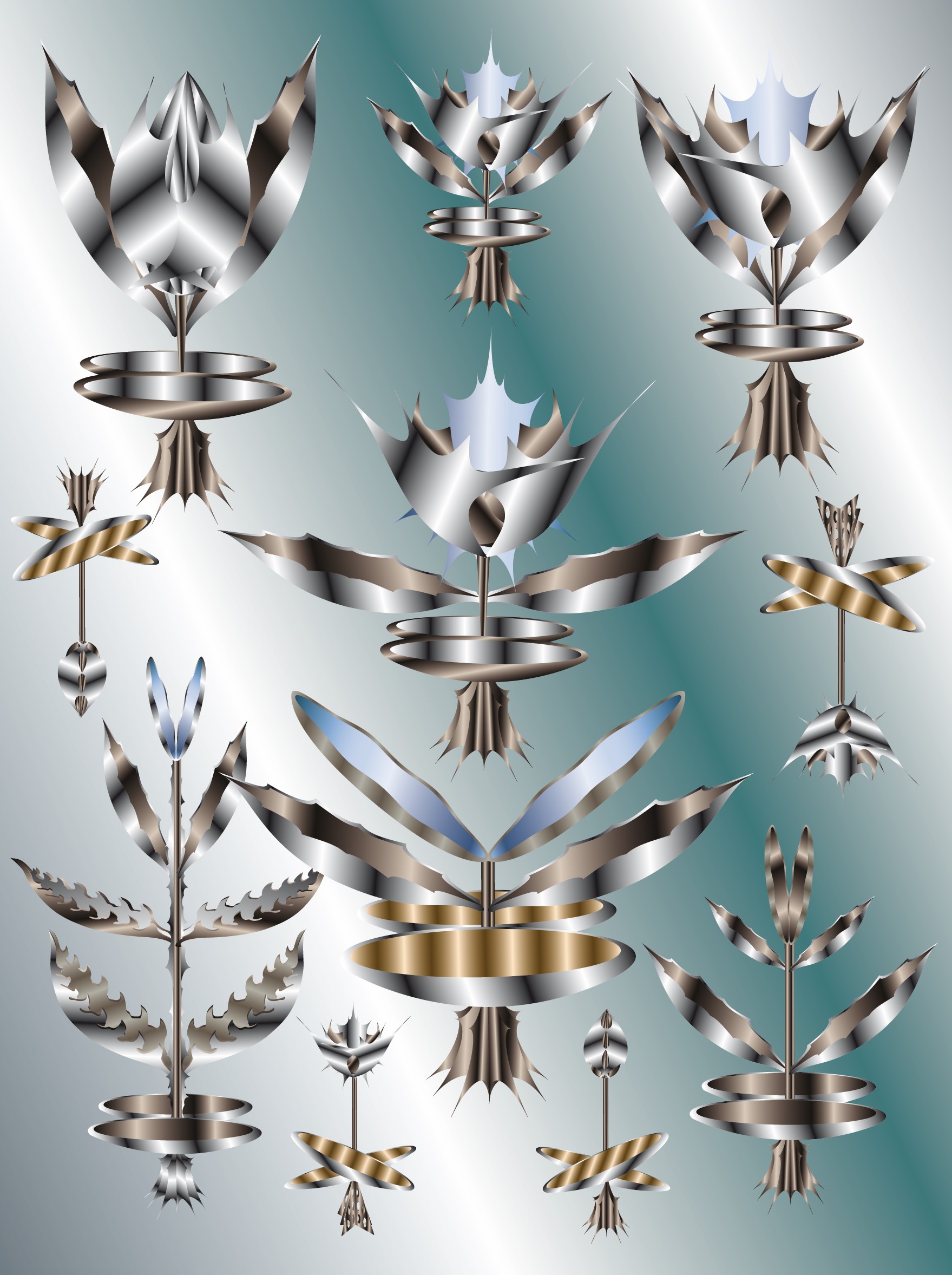 De Flowerbombs zijn statische, onbuigzame artificiële plantmodellen, die hun kracht ontlenen aan hun materiaal metaal.