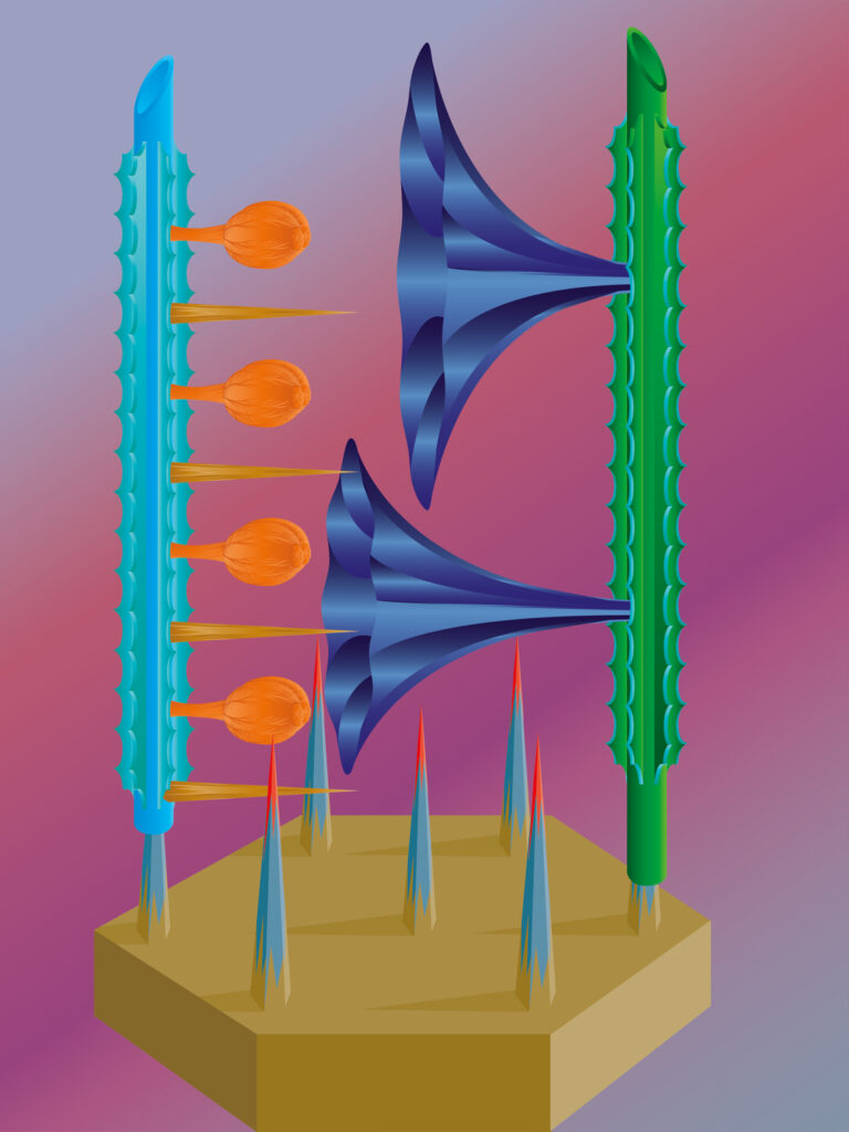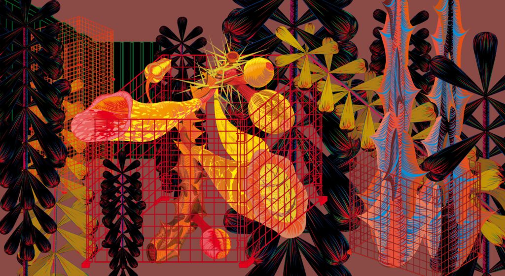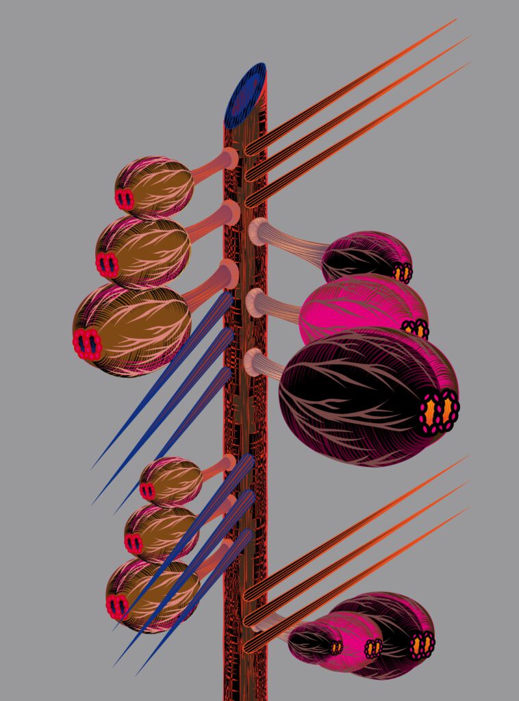 Een fictief beeldverhaal waarin futuristische plantmodellen worden gecreëerd die een verbeelding zijn van nieuwe overleveraars in een denkbeeldige toekomst.