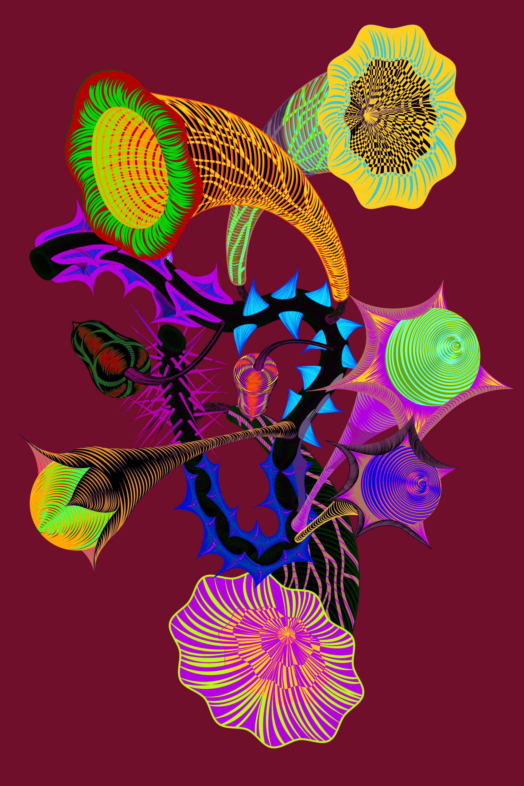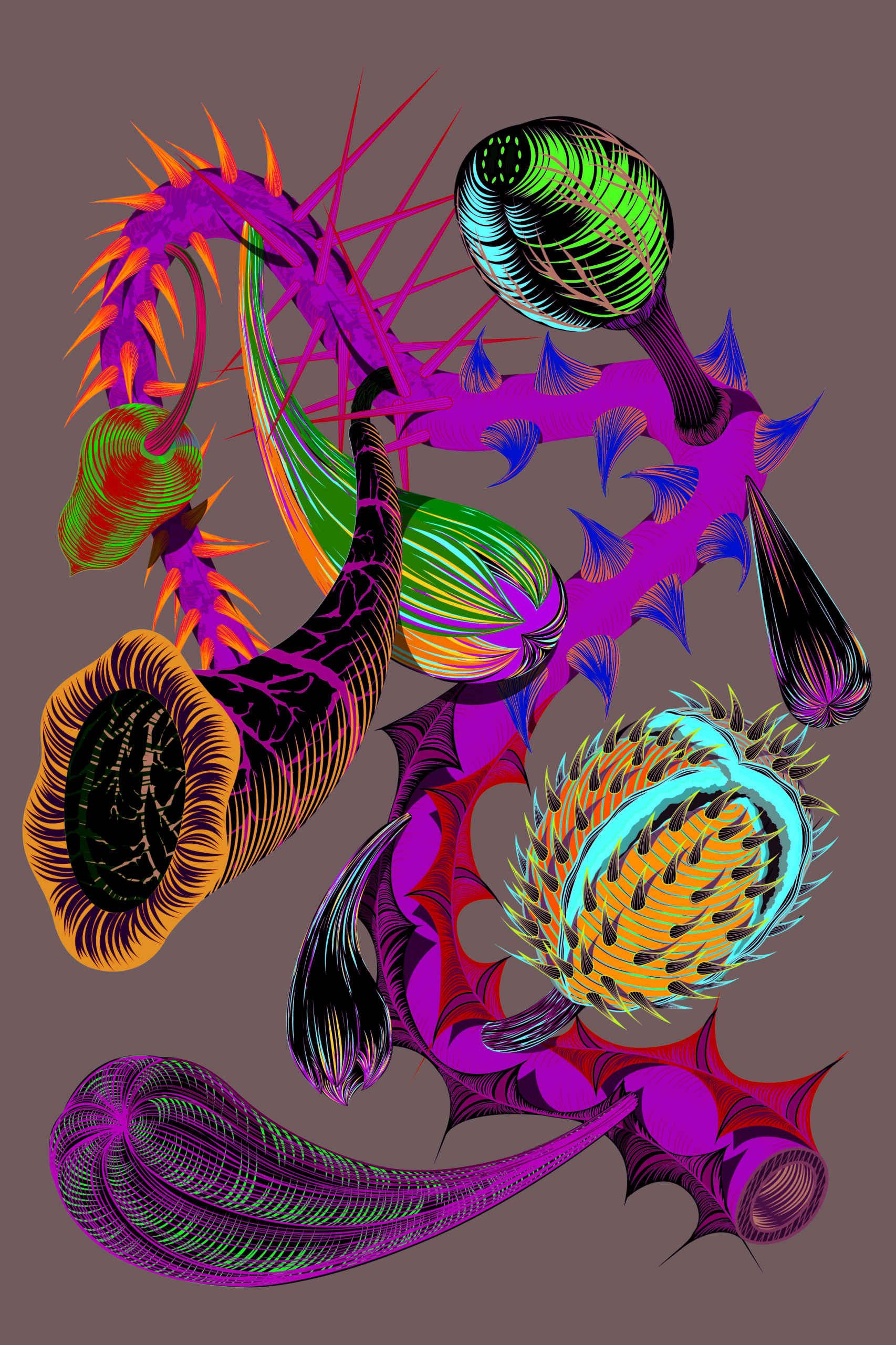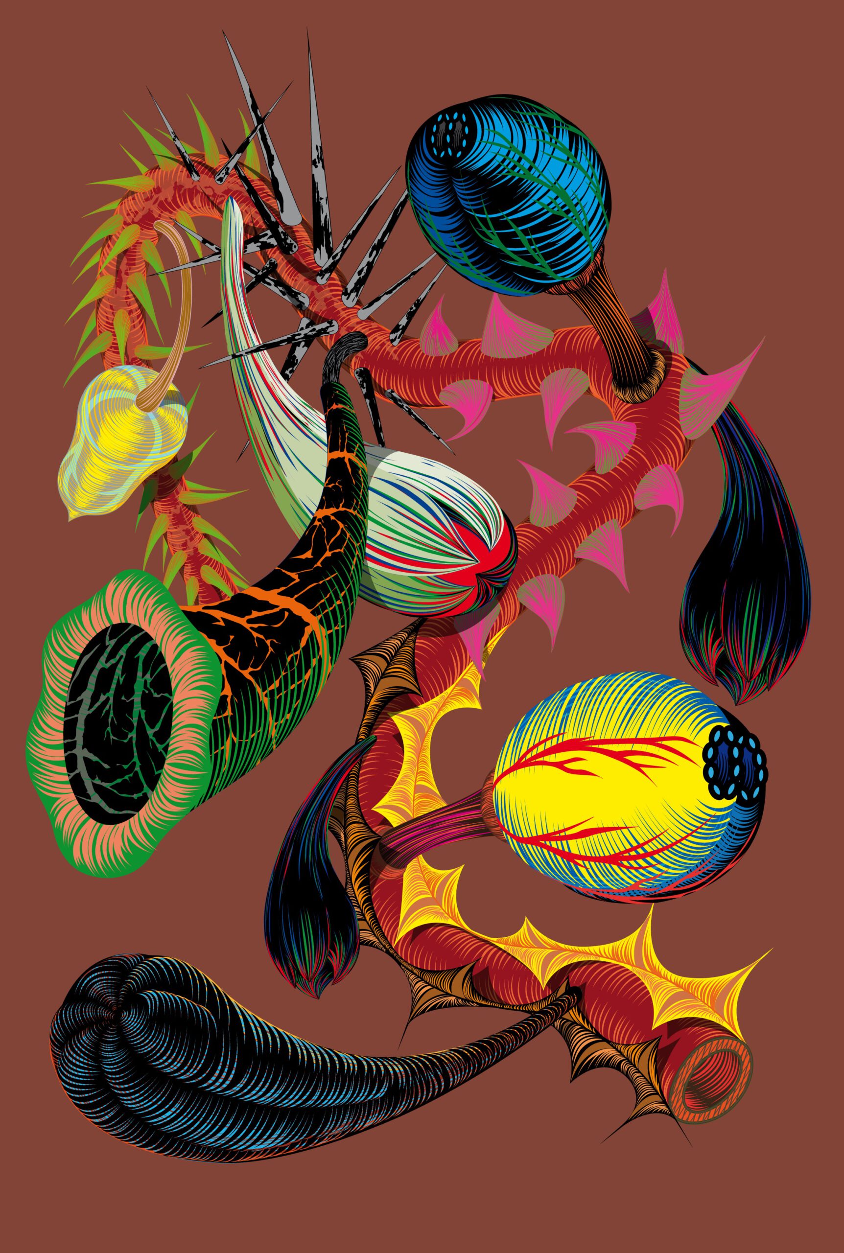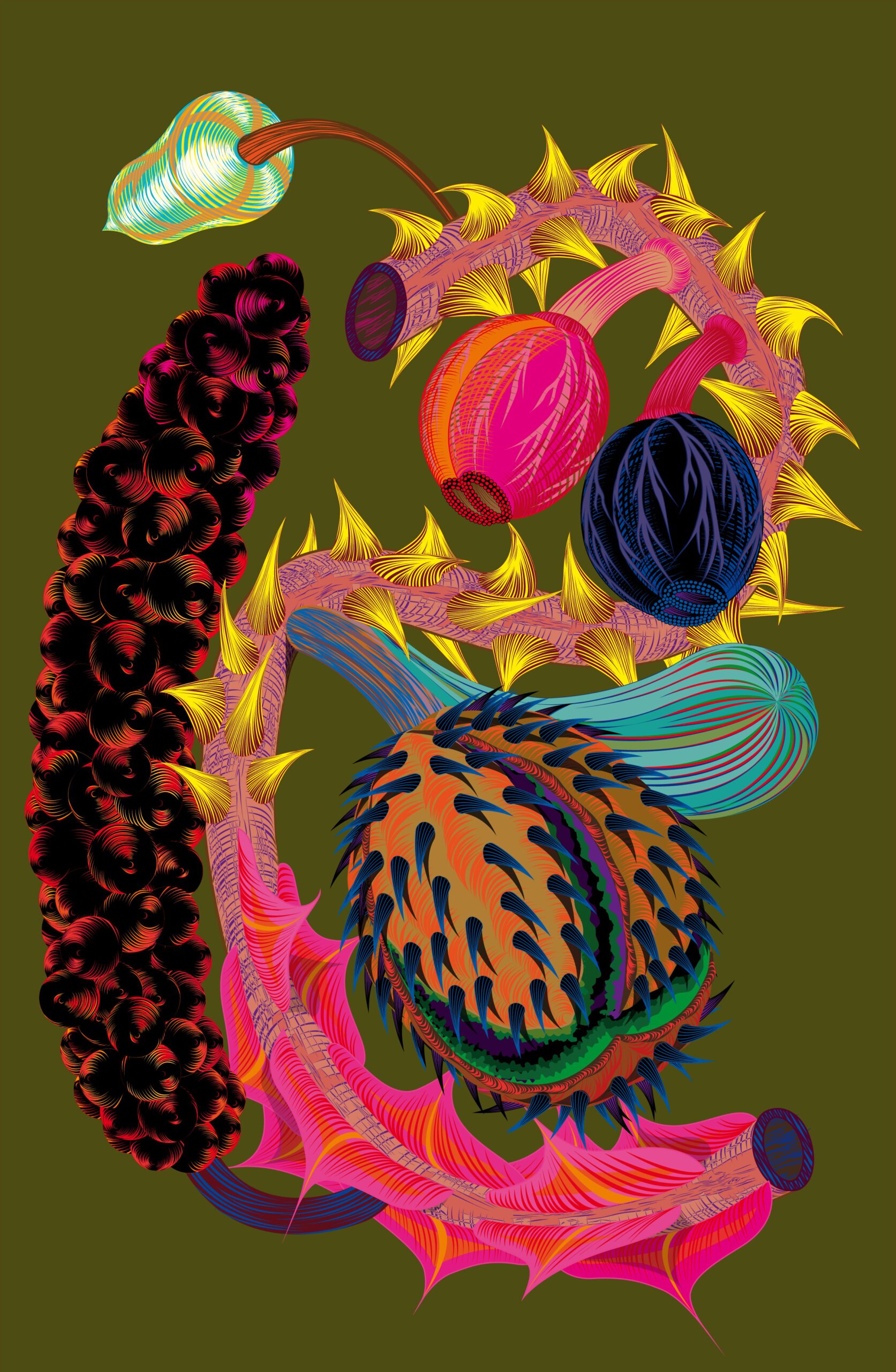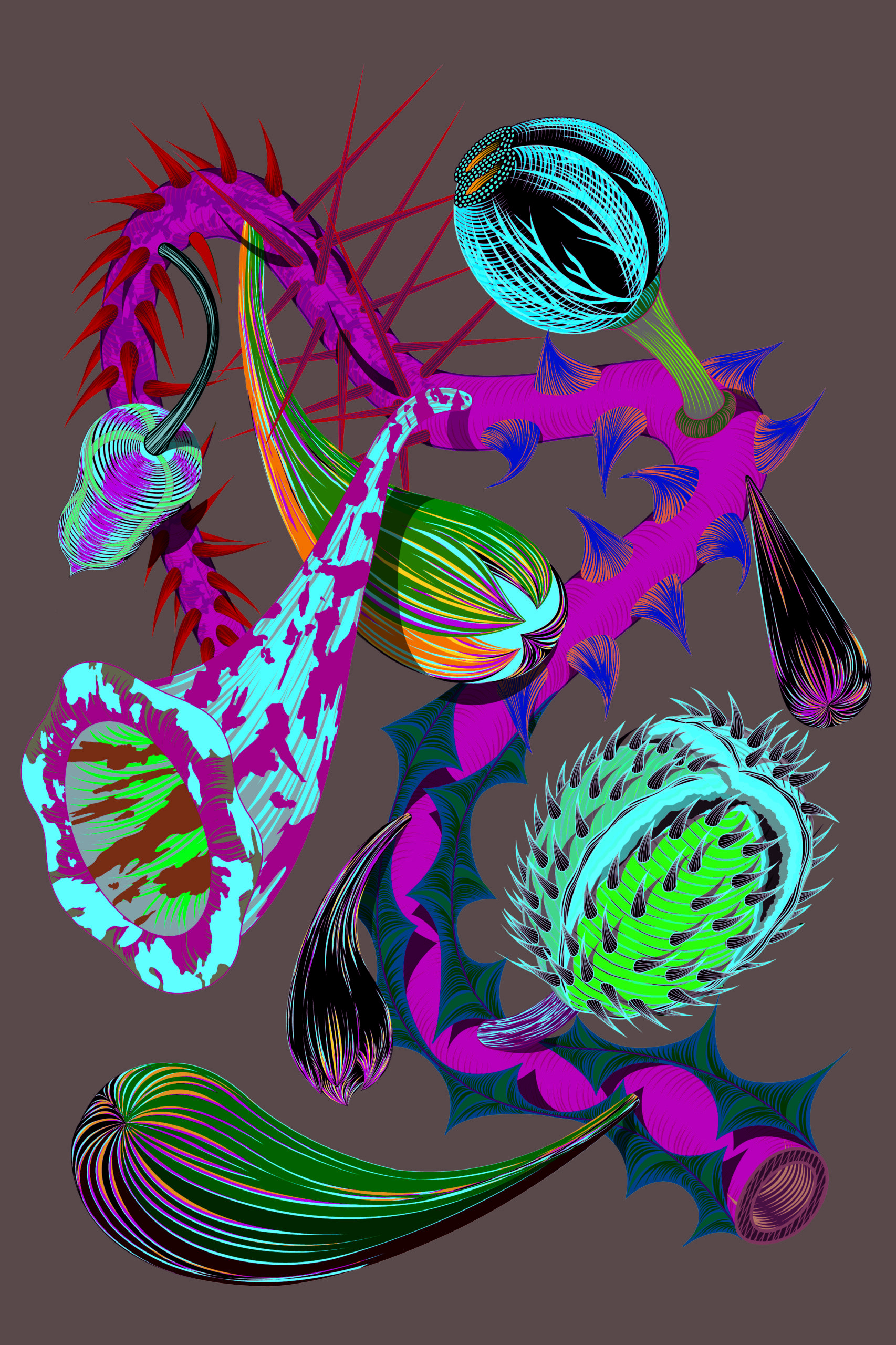 Serie groot formaat digitale tekeningen van TOXIC FLOWERS.